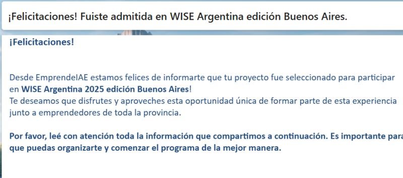 Nuestro proyecto ha sido seleccionado para participar en WISE Women in STEM Entrepreneurship Argentina 2025 – Edición Buenos Aires, organizado Emprende IAE